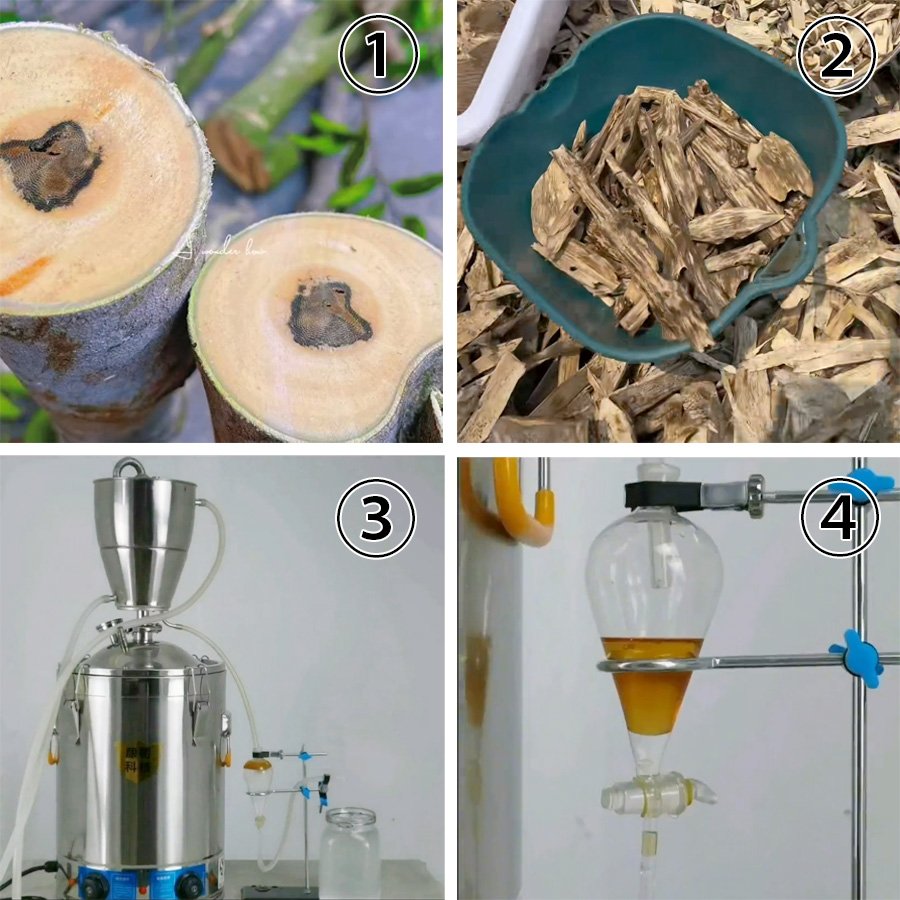 - Part Used: Resinated heartwood of agarwood trees