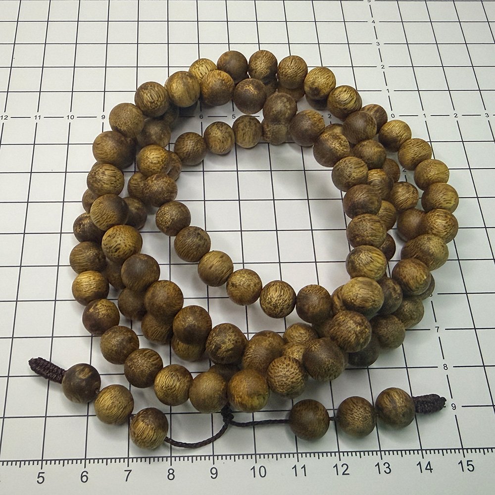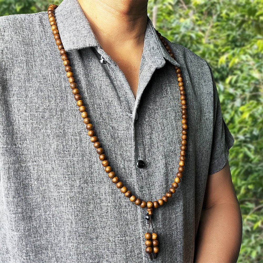 Natural Agarwood 108 Bead Necklace Bracelet – 9mm Premium Oud Prayer Mala, Rare Fragrant Wood, Handcrafted Meditation Jewelry